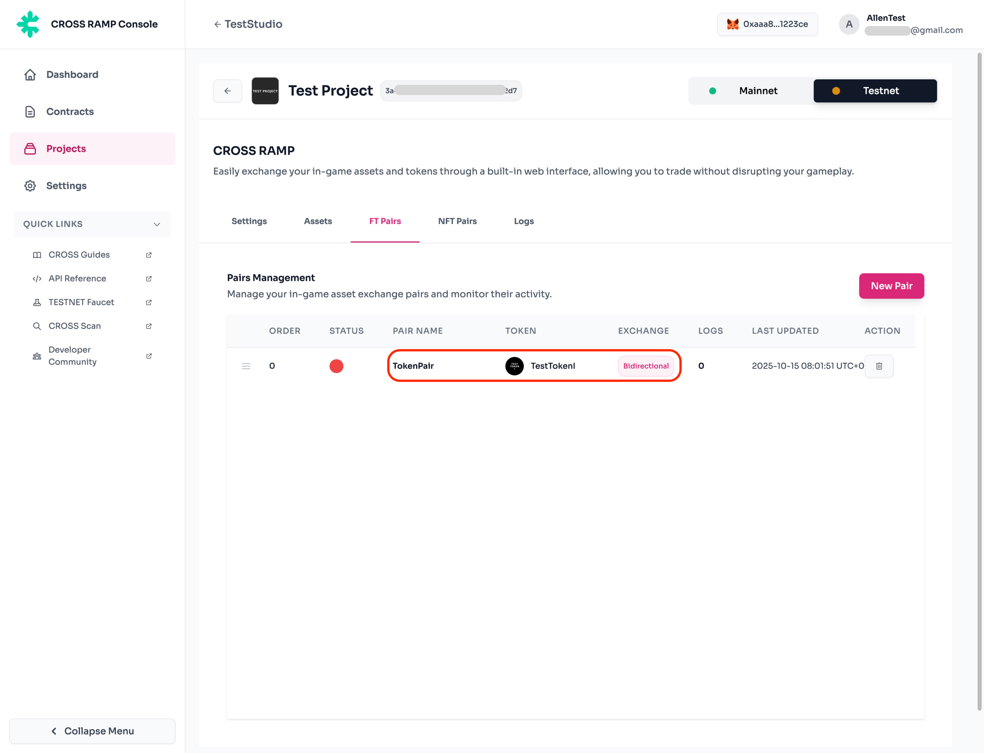 When first created, it is in an inactive state and needs to be activated after selecting from the Pair list.