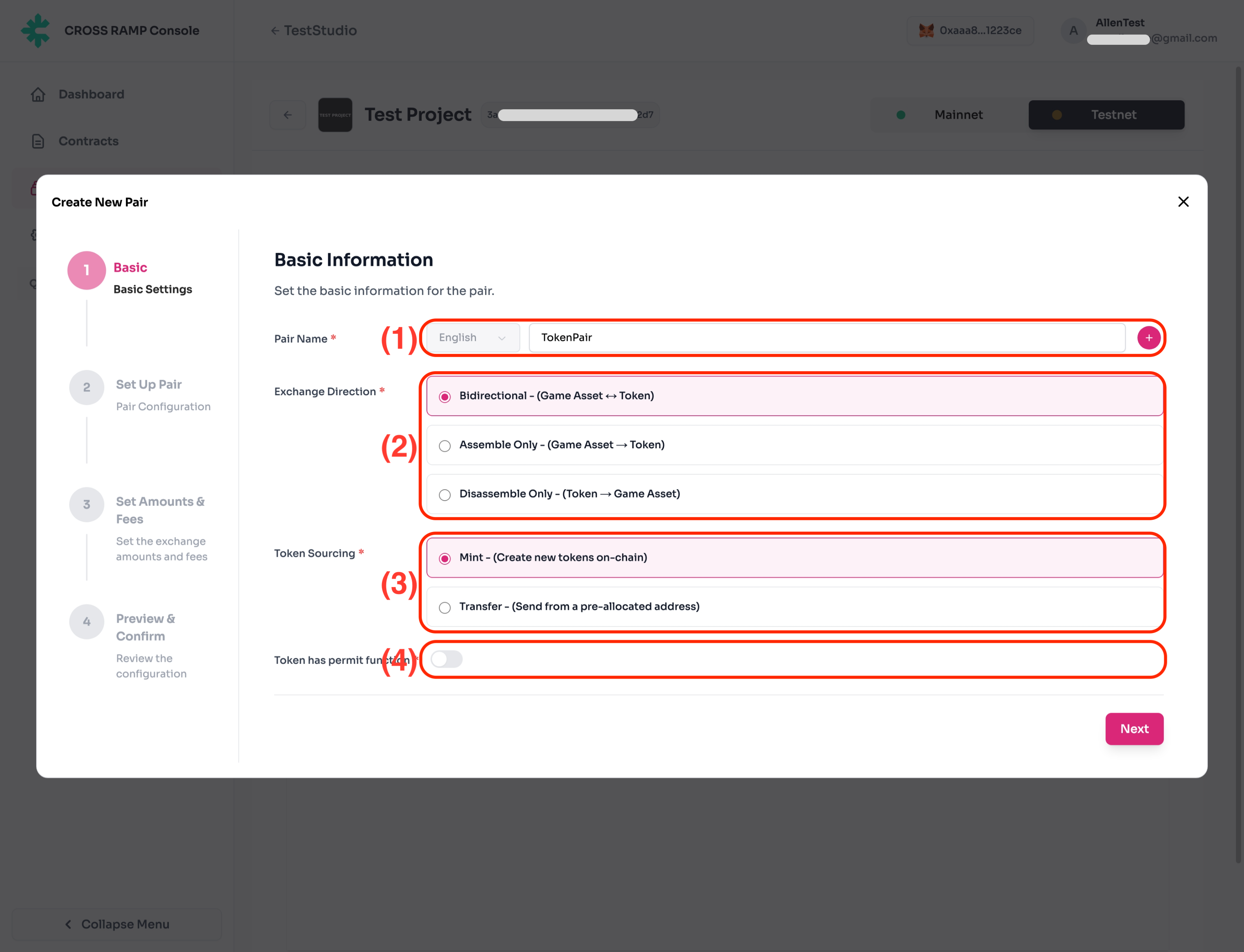 (2) | The number of tokens that can be minted using the game currency amount set in (1). |