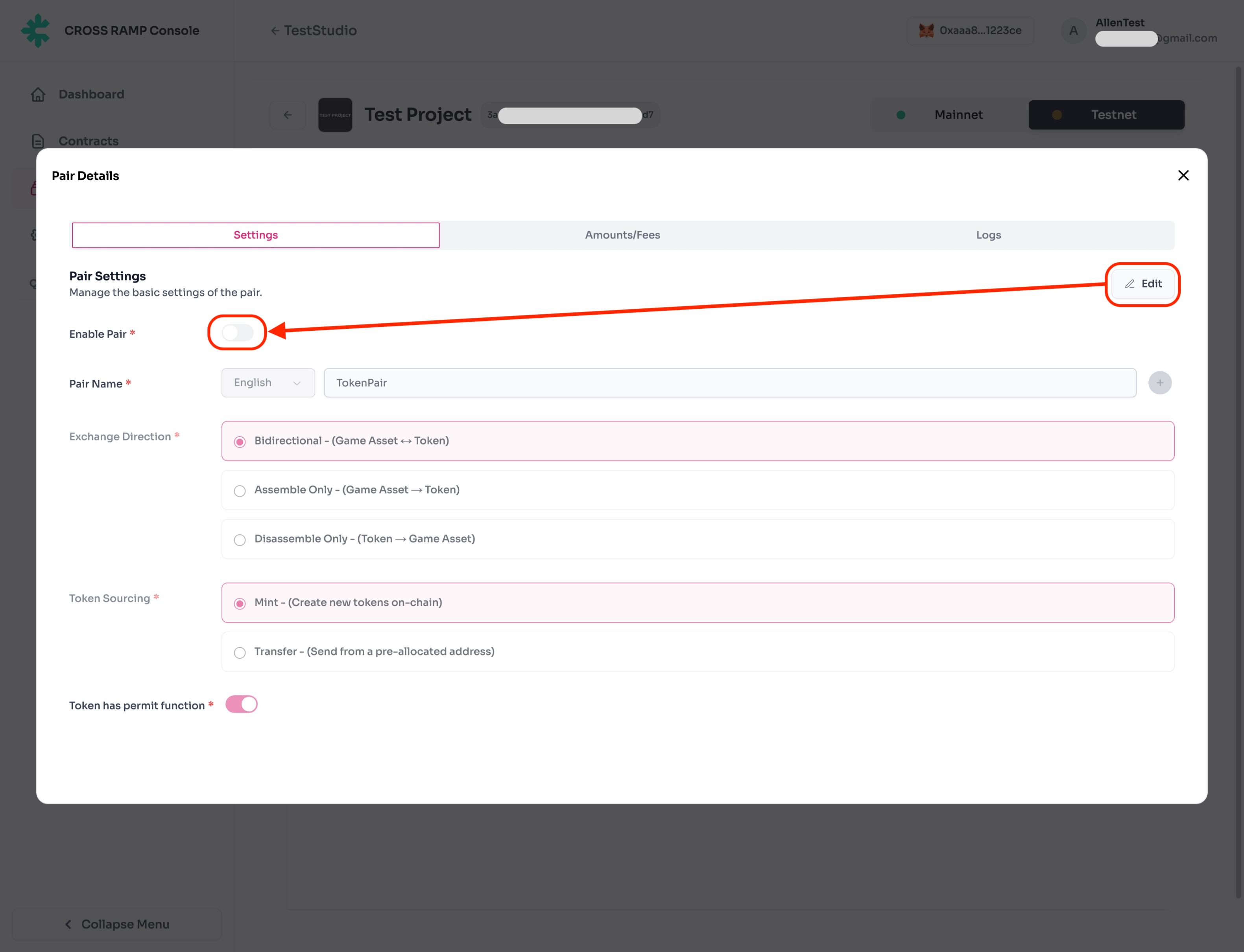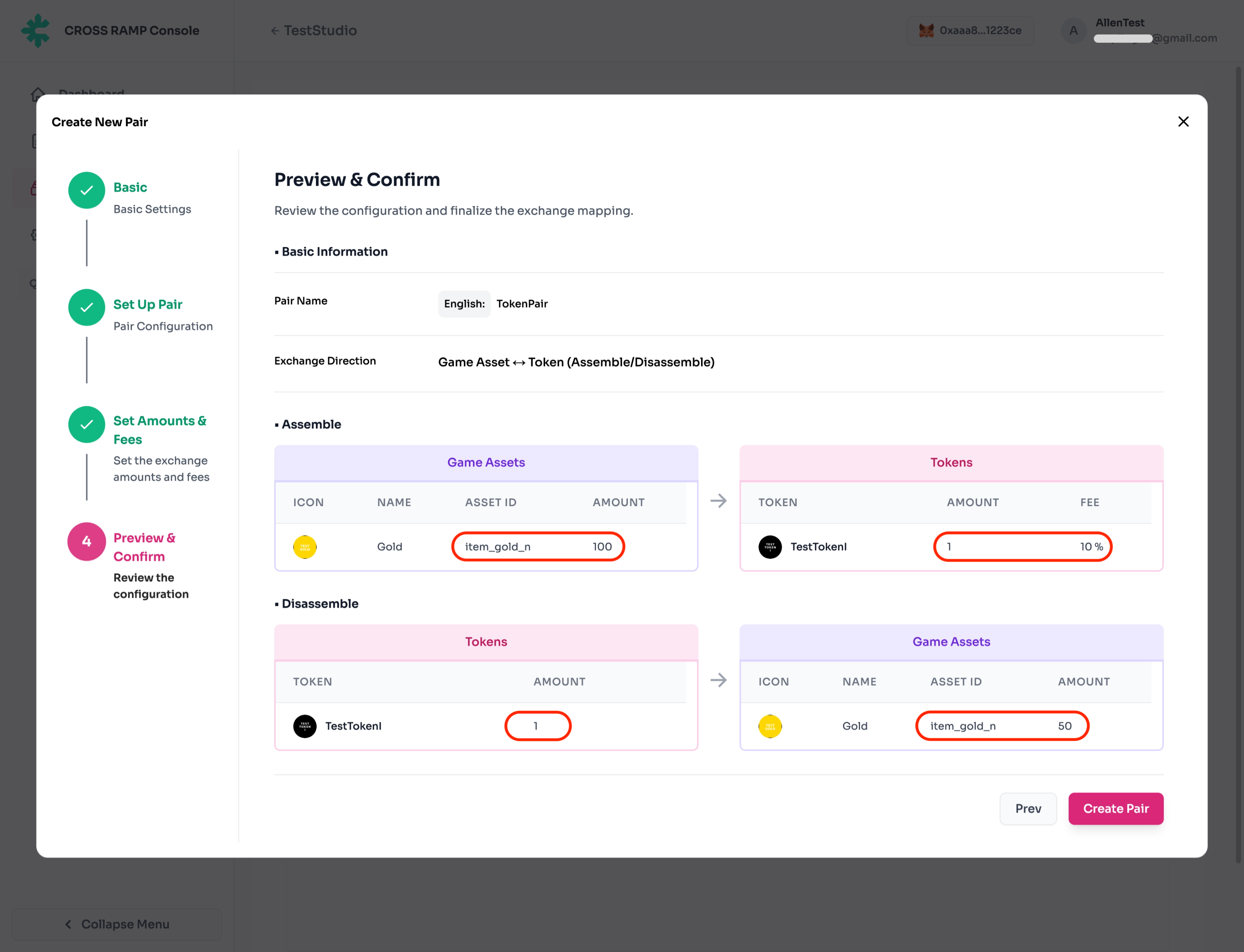 Confirm the configuration information for mapping game assets with game tokens for minting/burning.