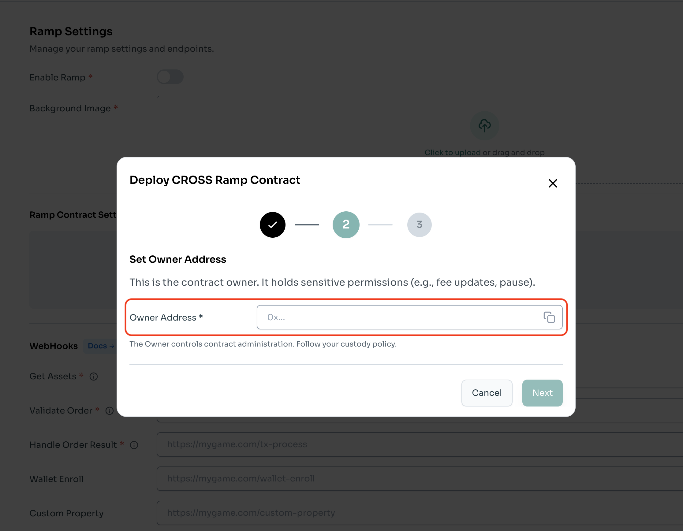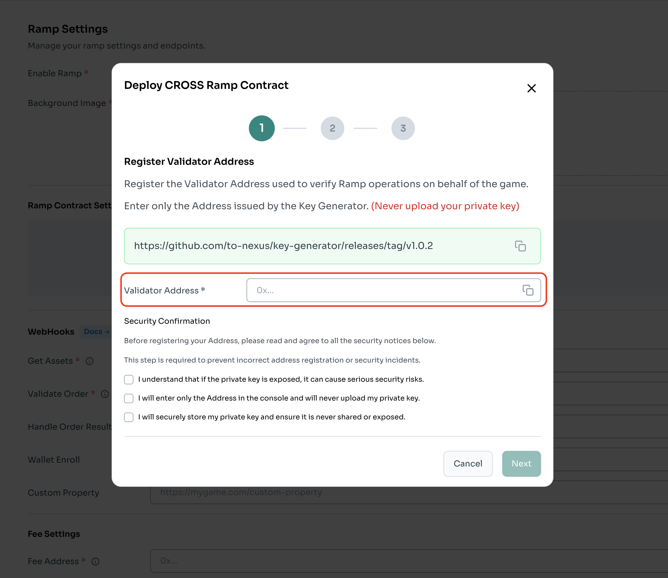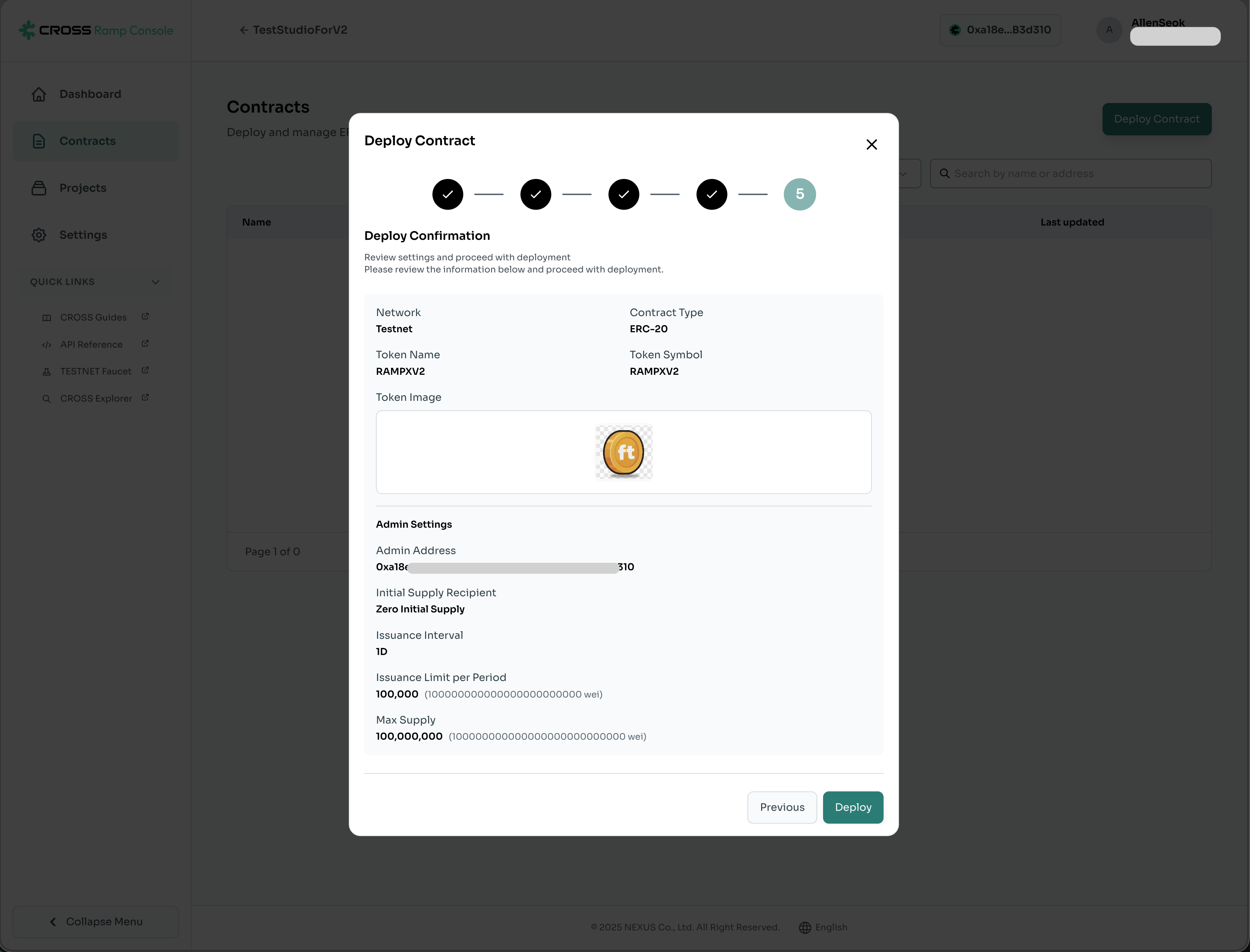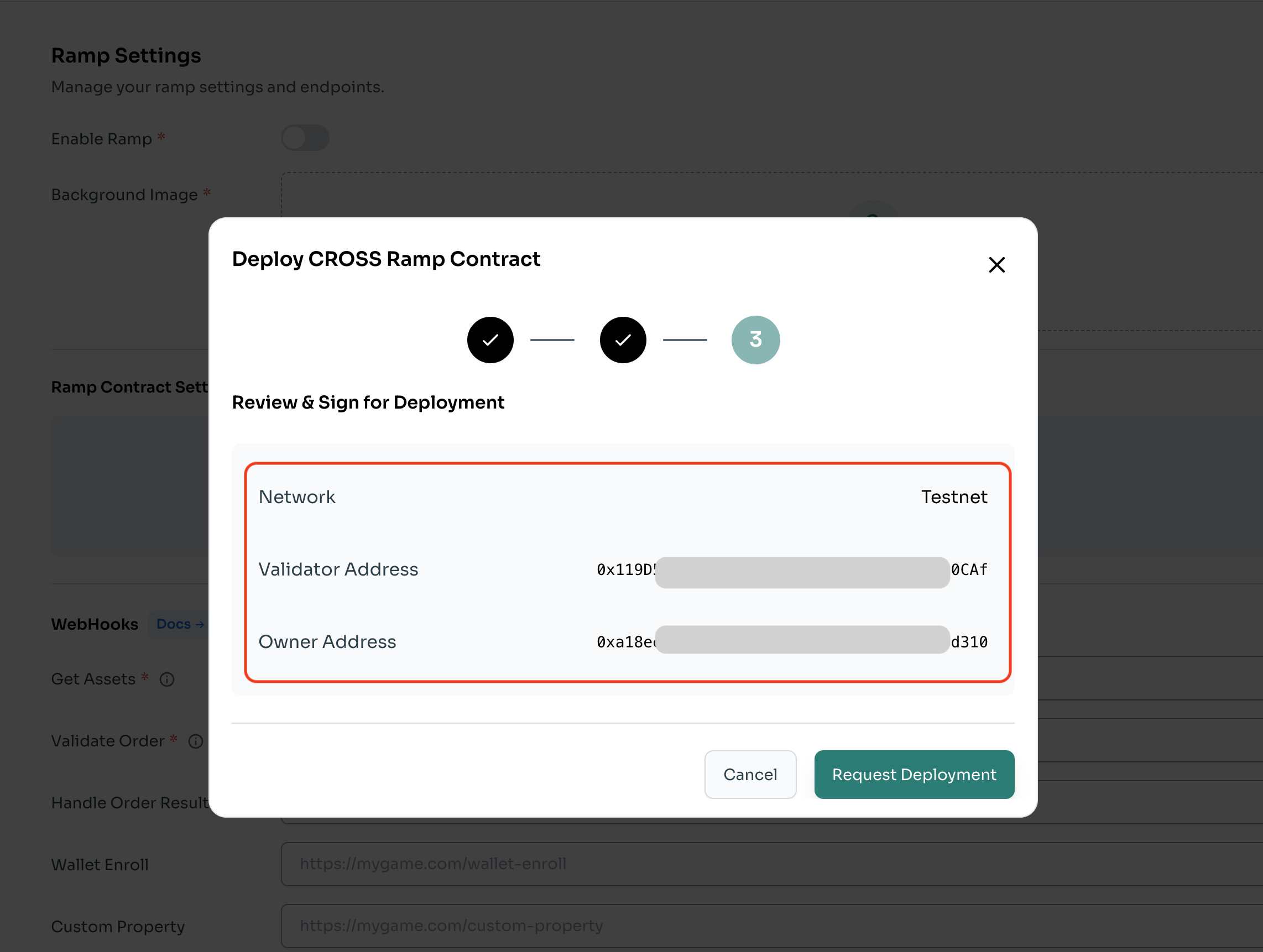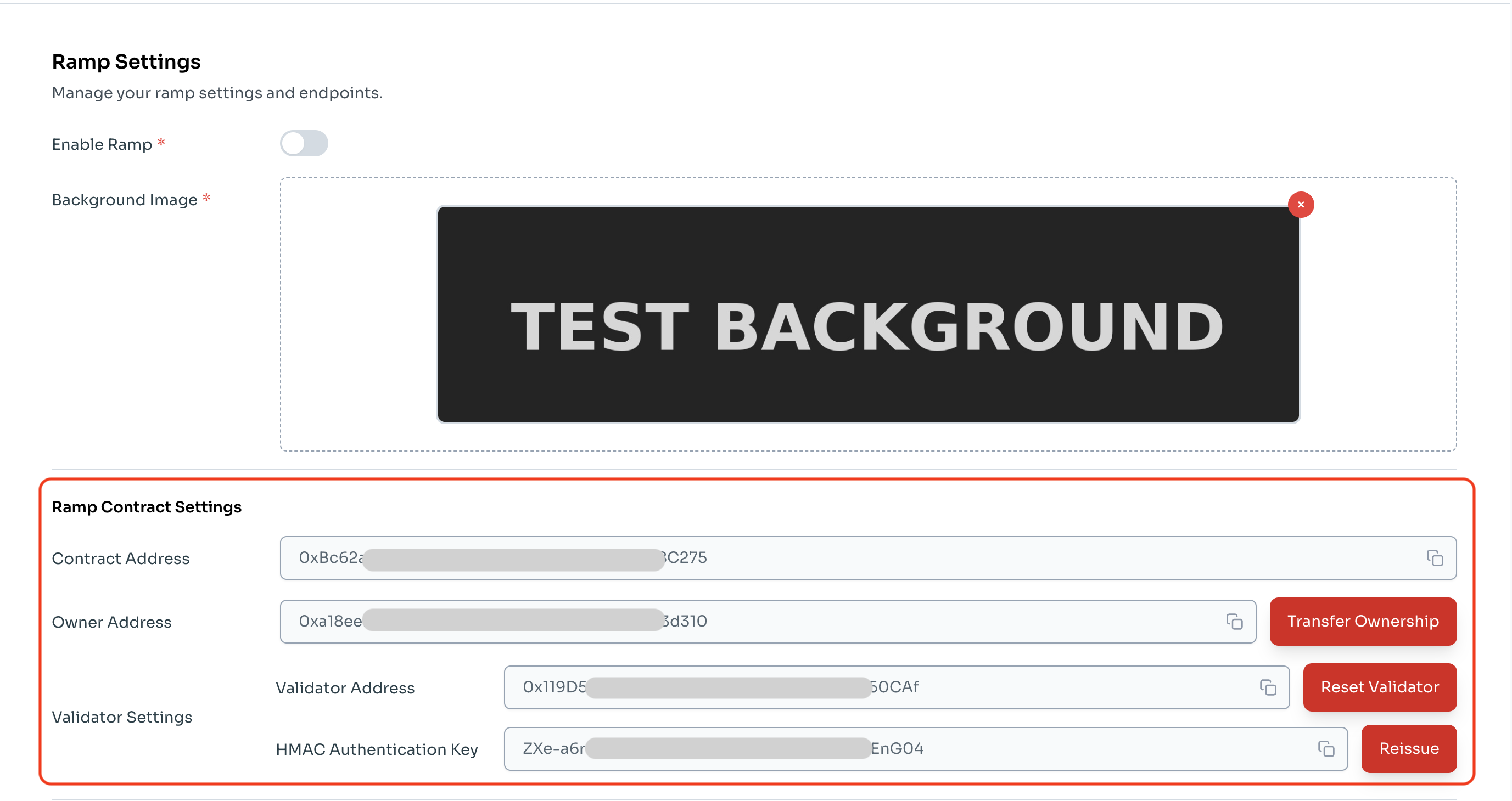 Once signed with the admin wallet, the RAMP Contract is deployed and the HMAC key is generated.