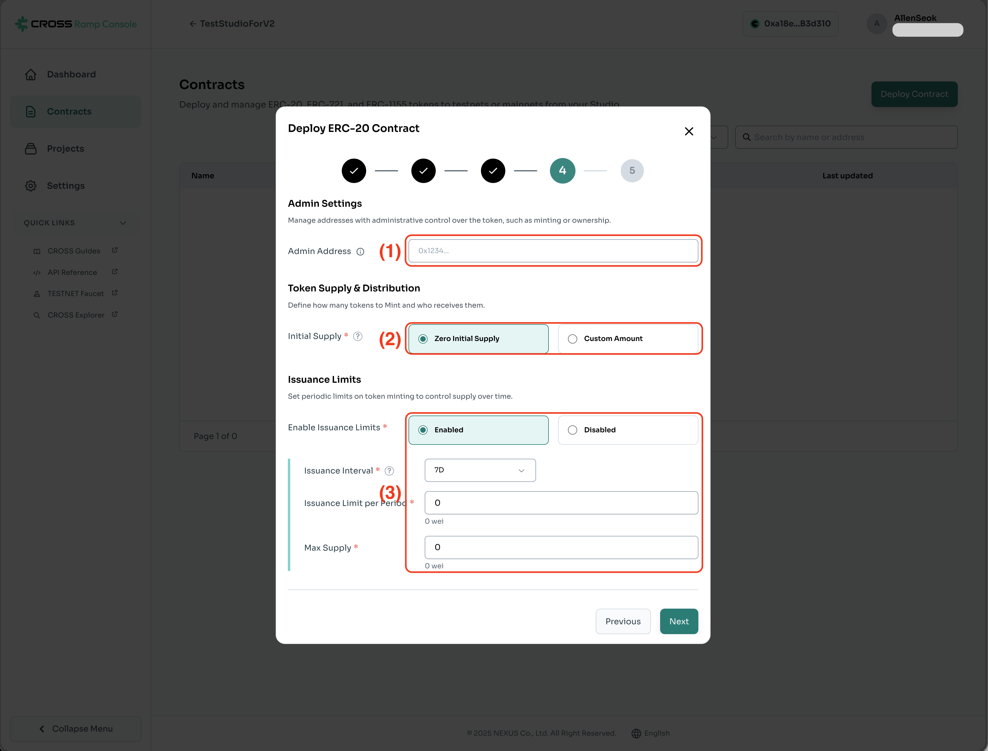 (3) | Daily token issuance limit settings. Reset based on UTC-0.