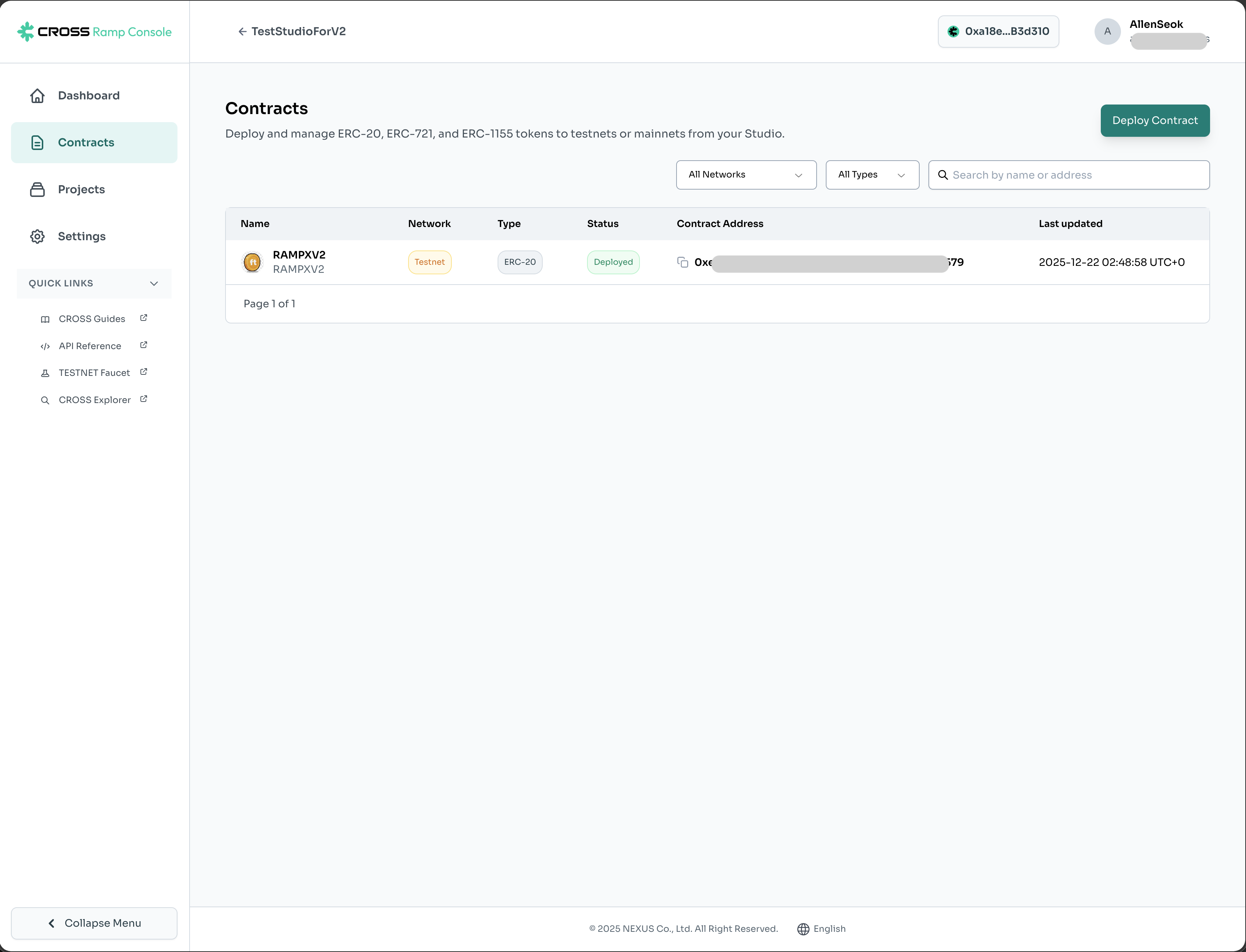Once the RAMP Contract and token contract are linked, token minting and burning are possible.