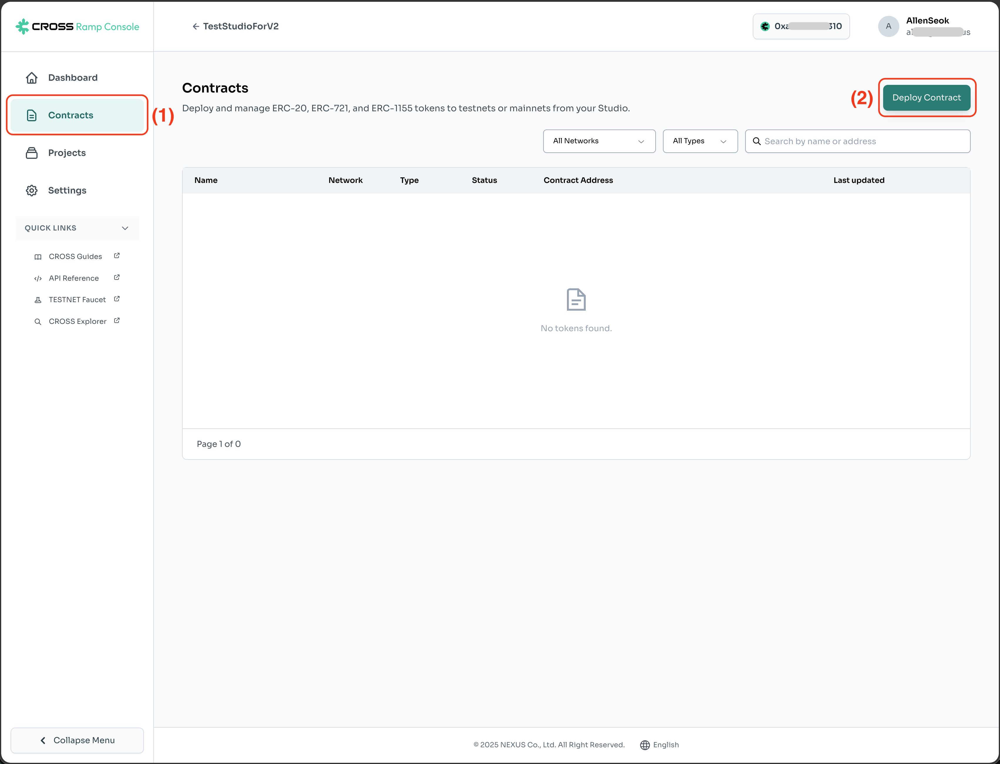 To deploy a contract, **[wallet connection](https://daum.net)** is required.<br /> Registration of the address of the private key generated by the tool provided by NEXUS is required.