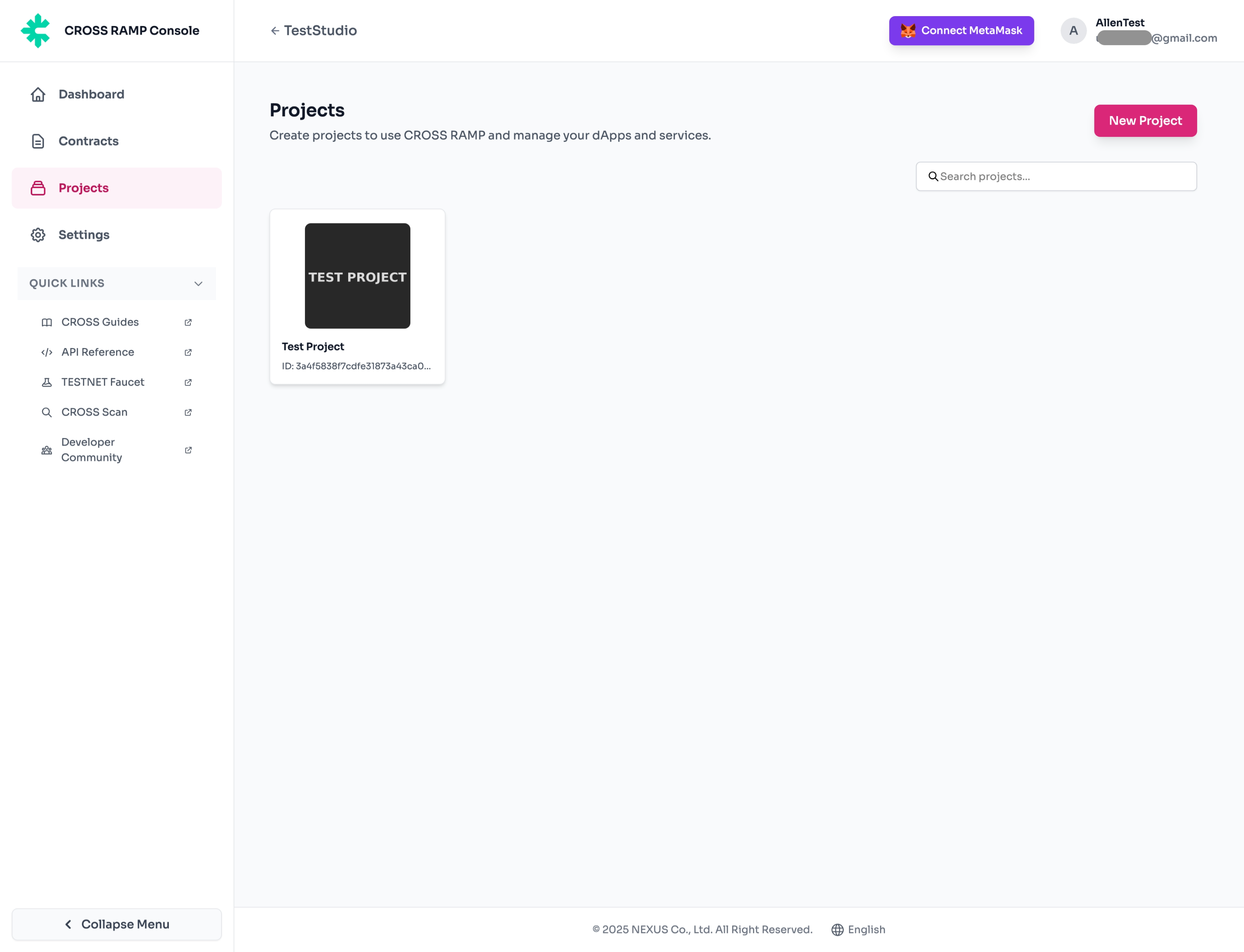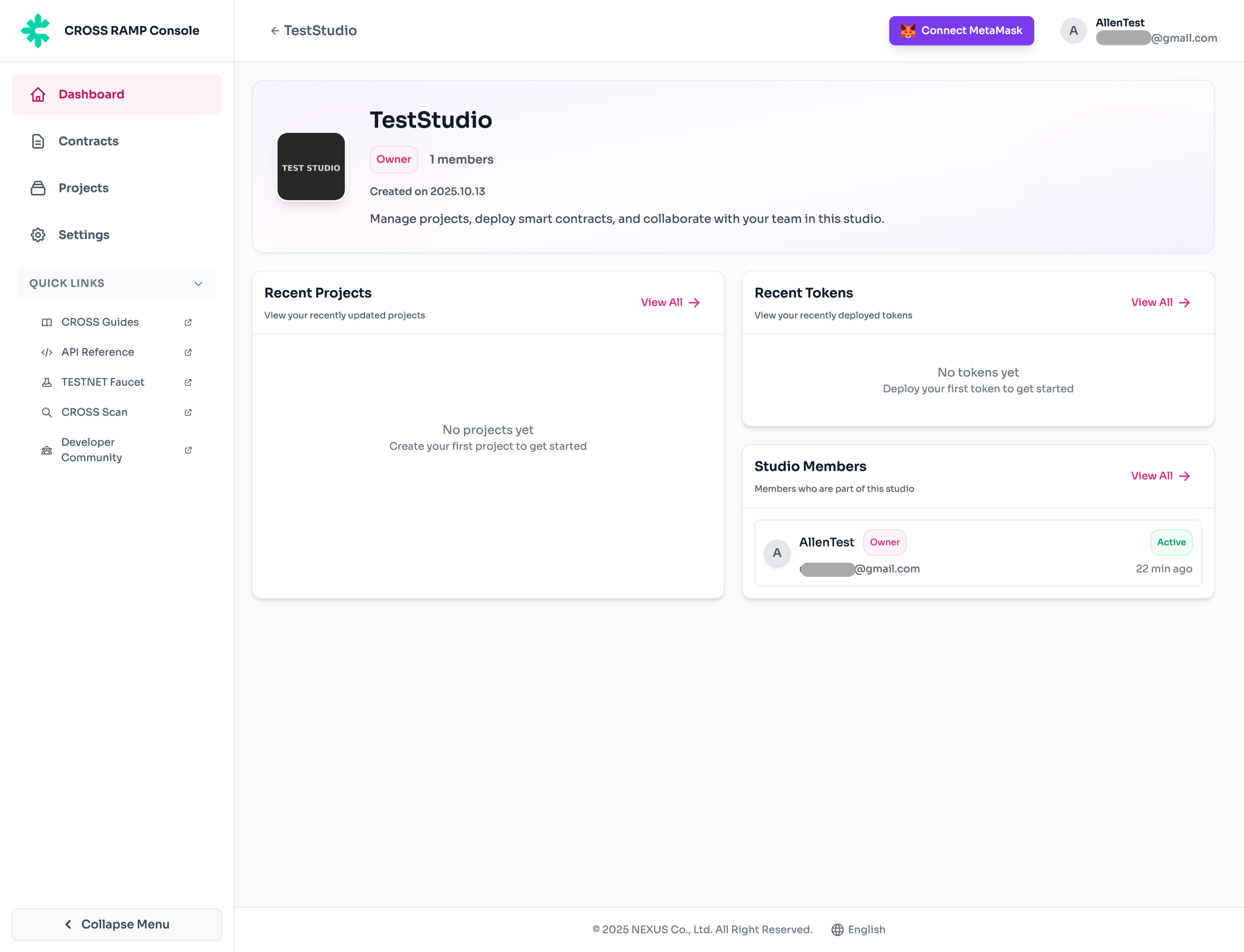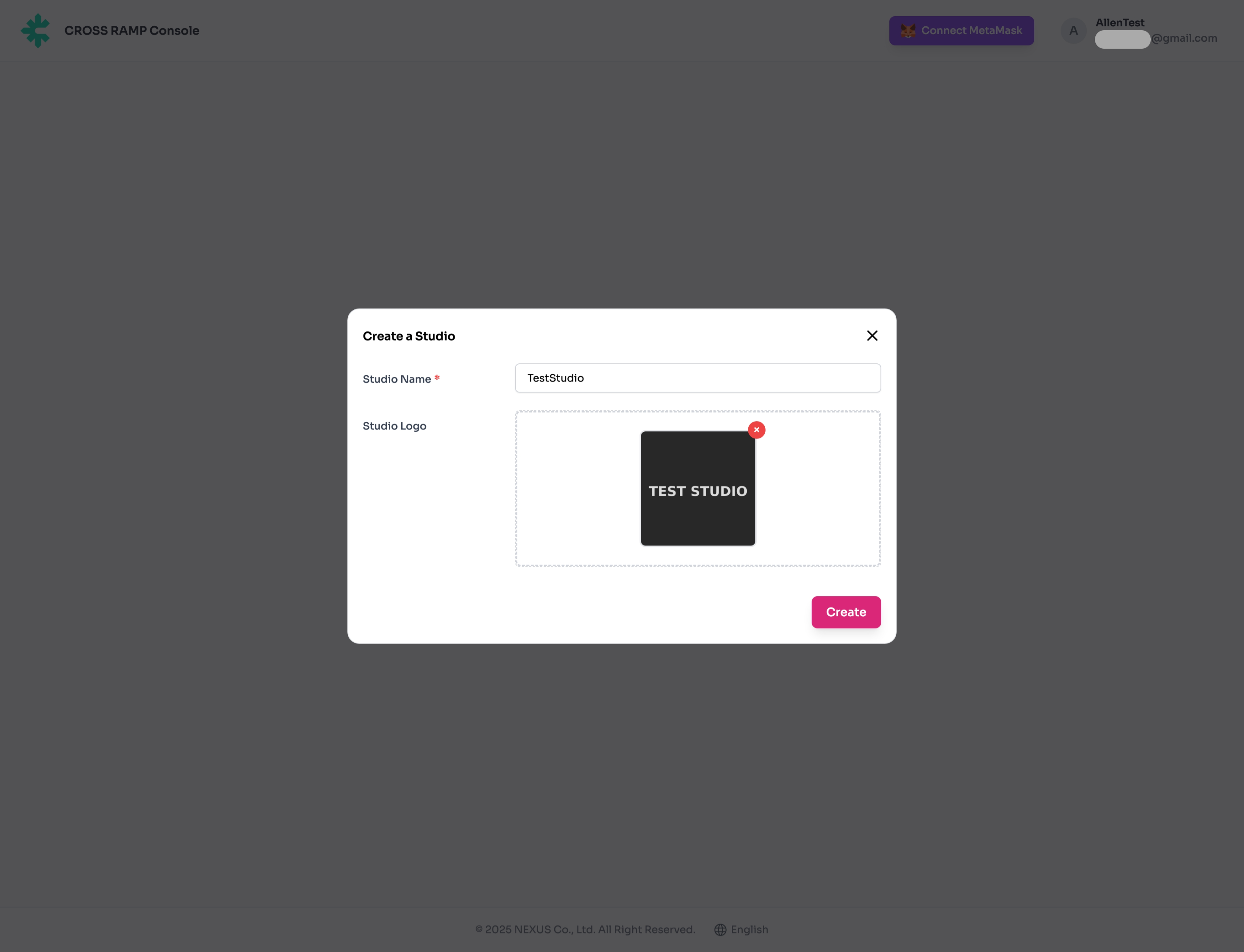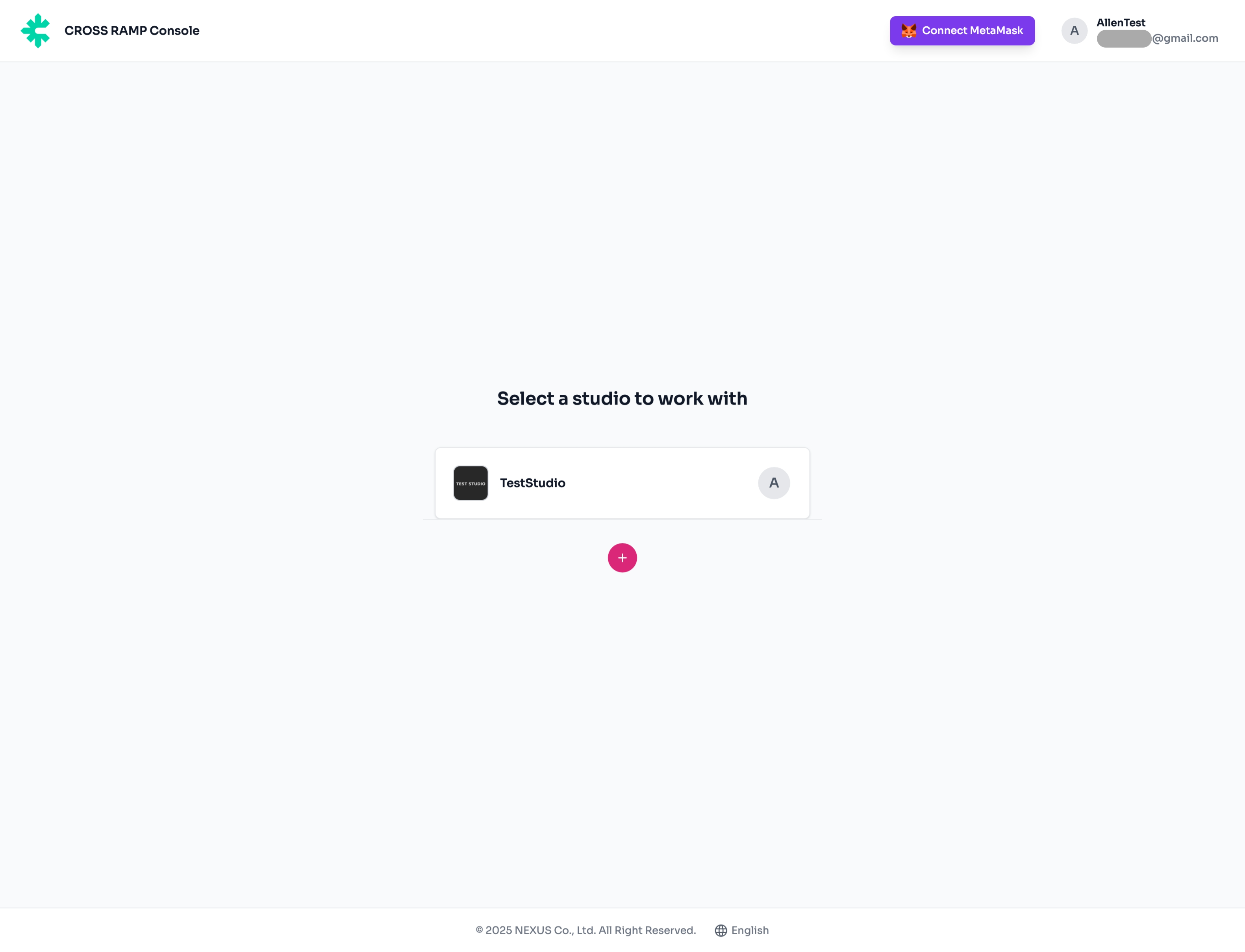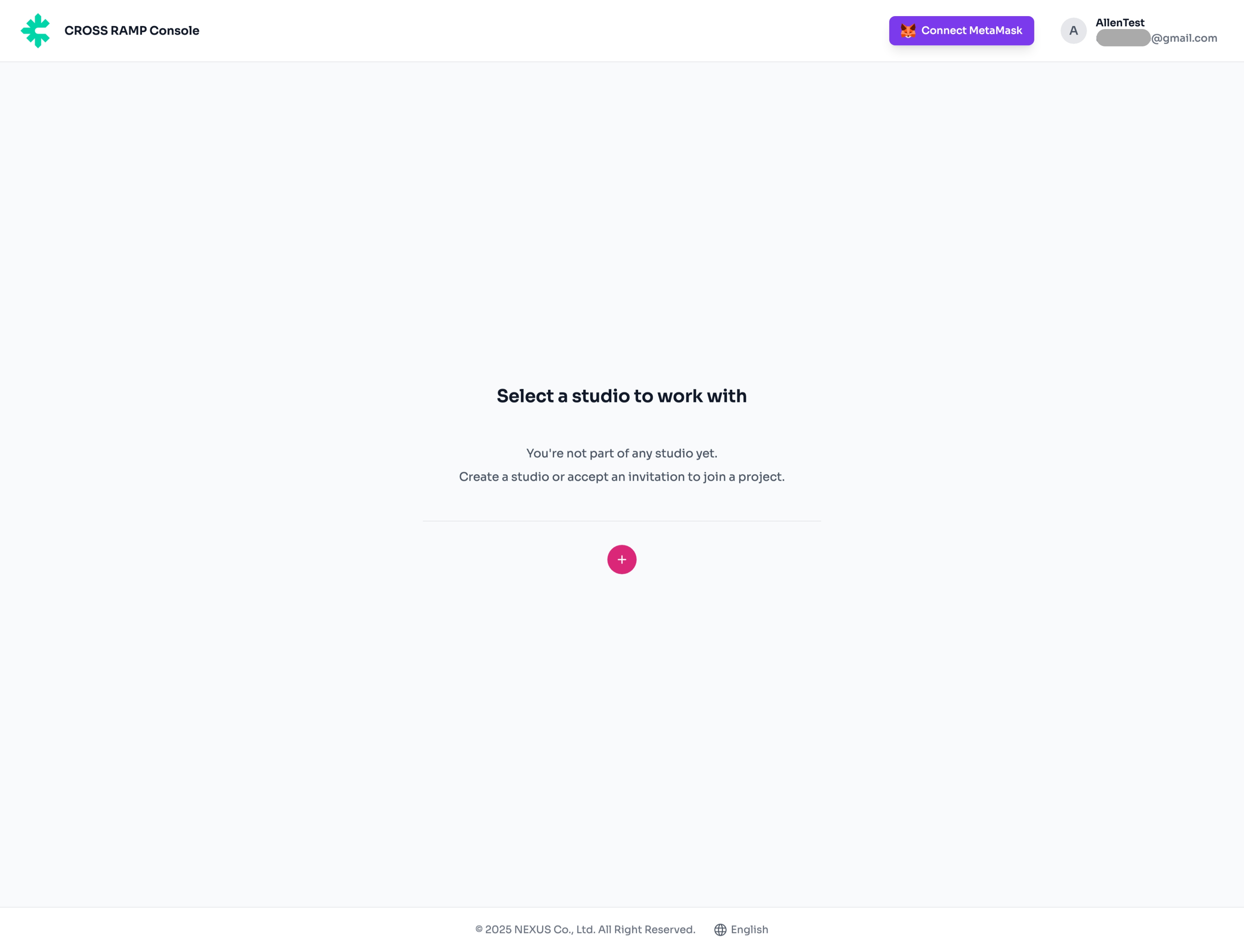 After signing up for CROSS Ramp Console, you need to create a Studio and Project.