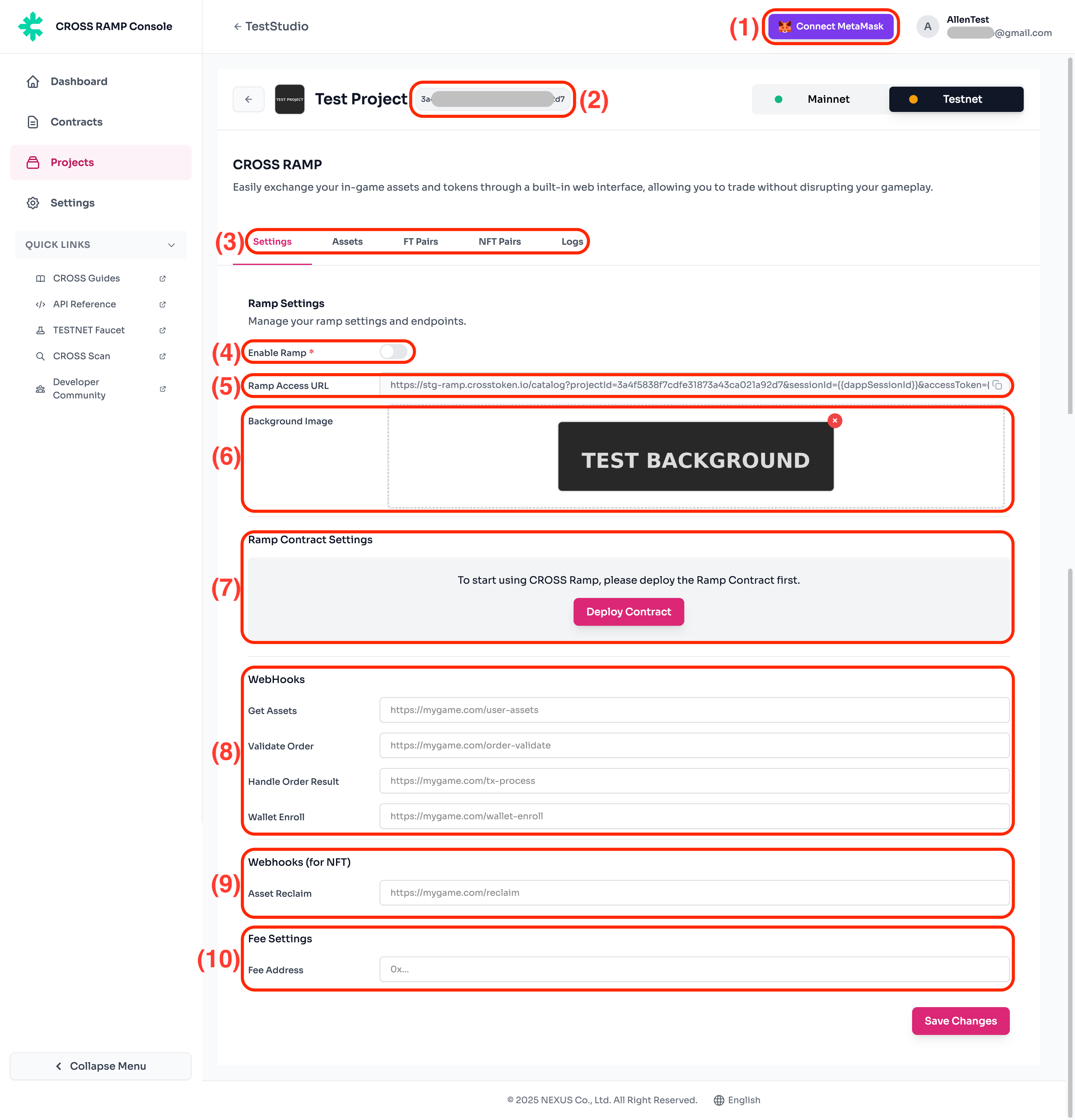 | (1) | A MetaMask wallet managed by the company must be connected for deployment of RAMP Contract etc. At this time, company-managed wallet address information is required. |
