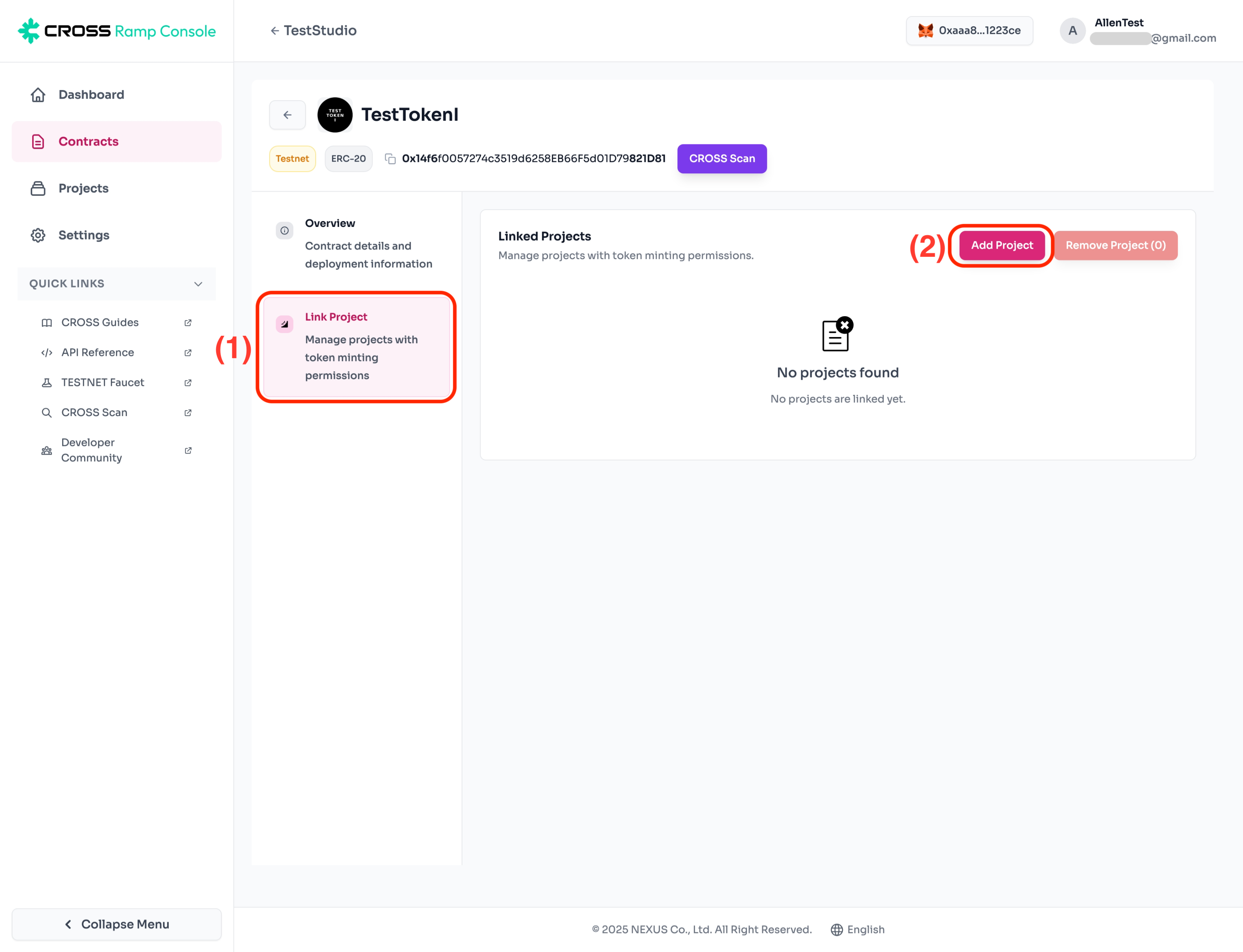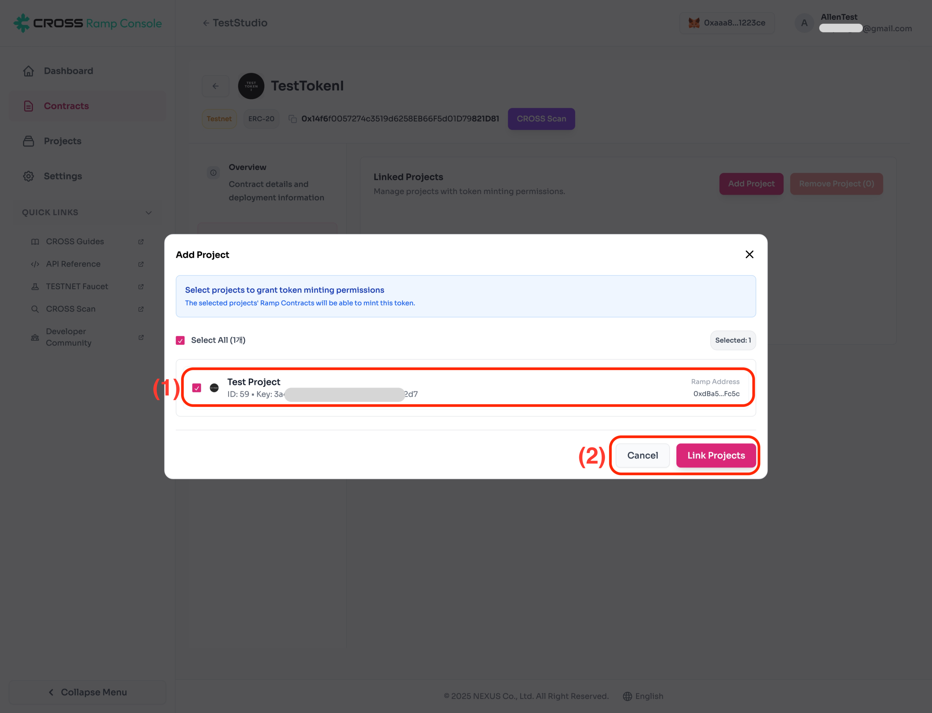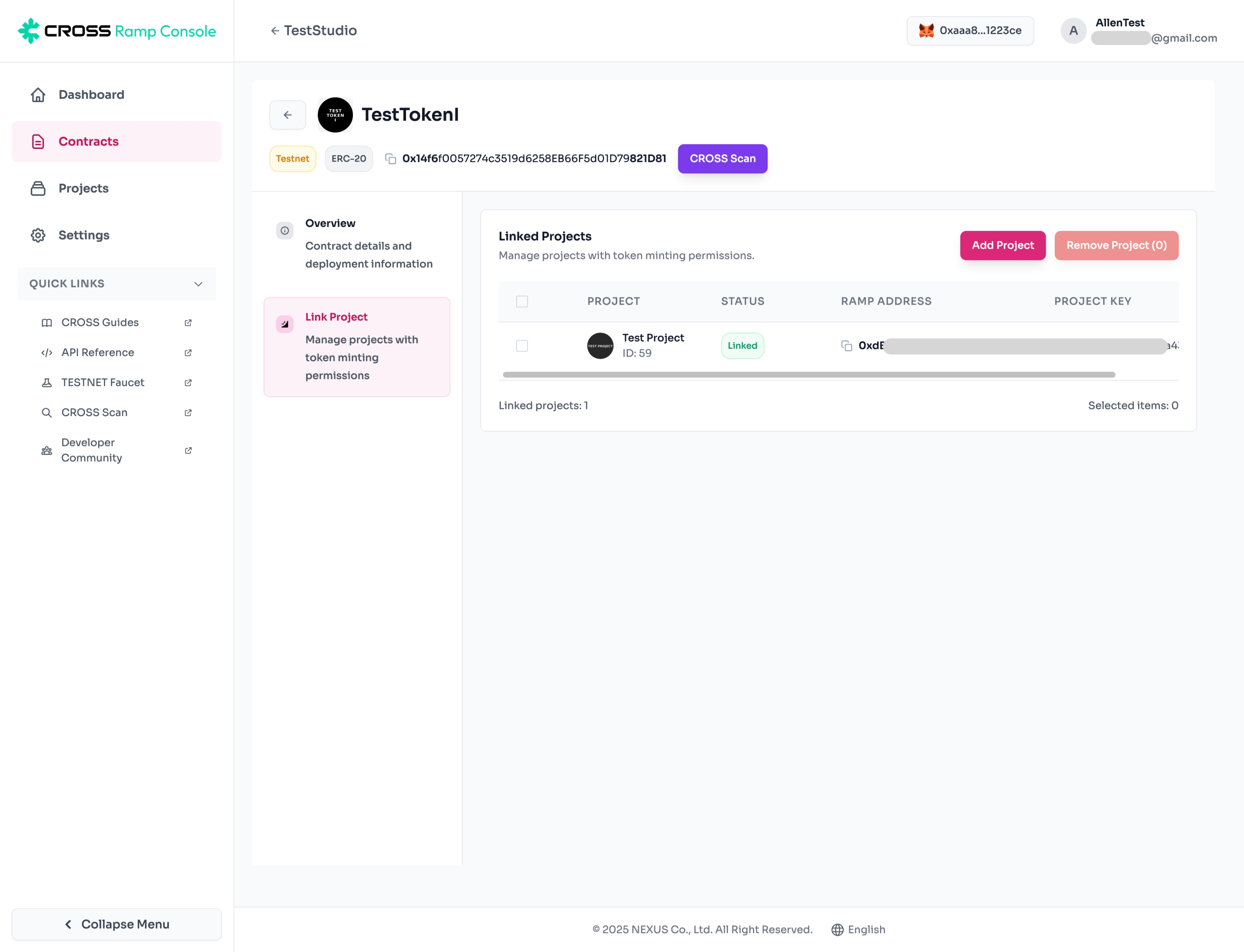 After completing the creation of RAMP contract and token contract, project linking work is required.