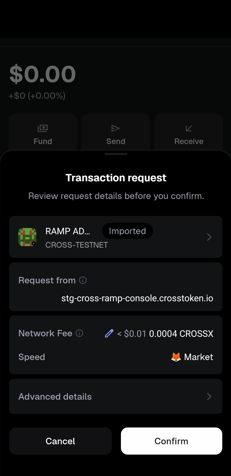 (Must hold 0.5 CROSS for transaction gas fees.)